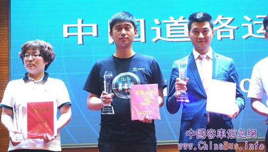 蘇州金龍海格客車代表(中間)登臺(tái)領(lǐng)獎(jiǎng)