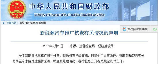 針對(duì)新能源汽車(chē)存在騙補(bǔ)情況,日前,財(cái)政部發(fā)布了《新能源汽車(chē)推廣核查有關(guān)情況的聲明》(以下簡(jiǎn)稱“聲明”),稱關(guān)于新能源汽車(chē)推廣騙補(bǔ)核查,現(xiàn)場(chǎng)核查已經(jīng)完成,目前處于會(huì)審階段,屆時(shí)將對(duì)外公布。