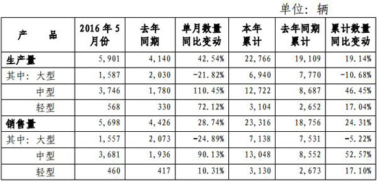 6月4日,鄭州宇通客車股份有限公司公布2016年5月份產(chǎn)銷數(shù)據(jù)快報。快報顯示,5月份,宇通銷售各類客車5698輛,同比增長28.74%;1-5月,宇通累計銷售各類客車23316輛,同比增長24.31%。