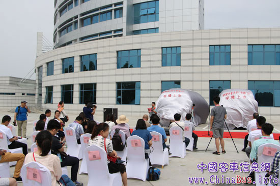 隨后,中通“7系”客車揭開了神秘的面紗,中通客車孫慶民總經(jīng)理與山東省委宣傳部李善偉處長共同為“電動(dòng)版”E07和“暢行版”C07揭幕,也標(biāo)志著這兩款產(chǎn)品正式上市。