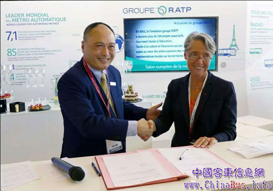 比亞迪歐洲分公司總經(jīng)理何一鵬與RATP首席執(zhí)行官Elisabeth Borne完成試運(yùn)營協(xié)議的簽署