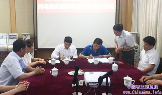 銀隆新能源與北旅時代20輛豪華雙層純電動觀光車簽約儀式現(xiàn)場(一)