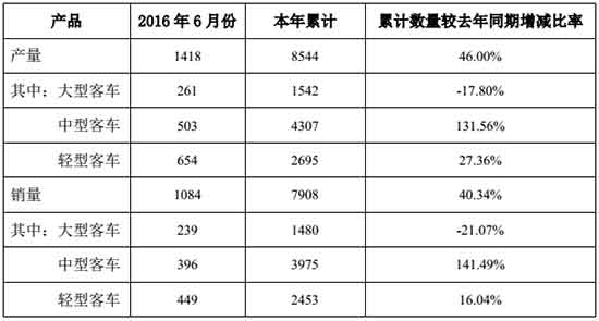 中通客車(chē)控股股份有限公司截止2016年6月份產(chǎn)銷(xiāo)數(shù)據(jù)快報(bào)如下: