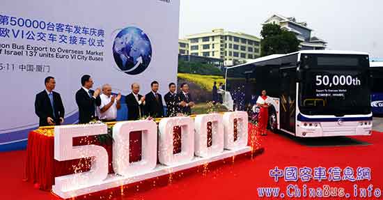 金旅第50000輛客車出口海外發(fā)車慶典暨以色列137輛歐VI公交車交接車儀式