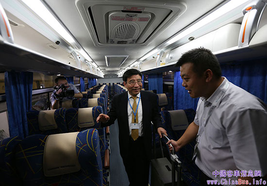 苗圩登上宇通展車參觀