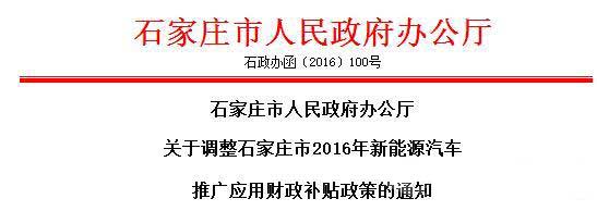 關(guān)于調(diào)整石家莊市2016年新能源汽車推廣應(yīng)用財政補(bǔ)貼政策的通知
