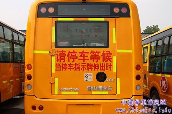 根據(jù)車型的不同,中通校車乘客門寬度一般在650—670mm之間,符合或高于國標(biāo)的要求(國標(biāo)要求不低于650mm)。后安全門寬度為1.2米,比大部分同類產(chǎn)品都要寬。這是考慮到孩子睡著時,照管人員抱著其上下車更為方便,同時也便于緊急情況下的救助和逃生。