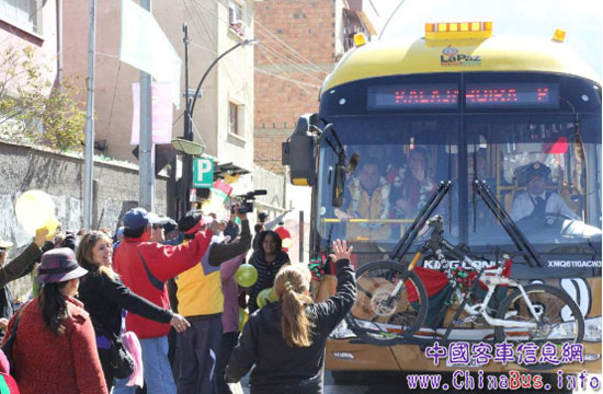 回首2014年1月,拉巴斯首次開通金龍客車公交運(yùn)行線路,民眾歡歌熱舞慶祝新的交通出行方式到來。而今,伴隨第四條線路儀式的開通,再度引發(fā)當(dāng)?shù)孛癖姷目駳g。據(jù)悉,拉巴斯市所有城市公交運(yùn)行系統(tǒng)的車輛均為金龍客車,已超過百輛,其運(yùn)行安全、舒適、高效的表現(xiàn)得到市長Luis由衷認(rèn)可。