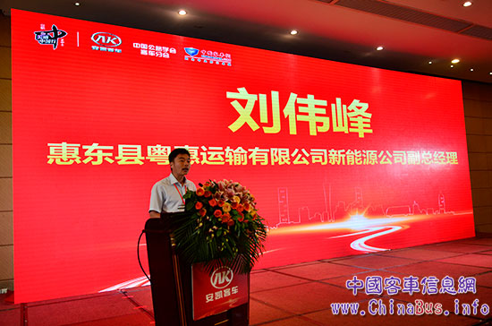 在安凱美麗中國行第四季華南站現(xiàn)場,惠東縣粵惠運輸有限公司新能源公司副總經(jīng)理劉偉峰對安凱新能源客車給予了極大的認可。劉偉峰說:“正是安凱新能源客車的品質(zhì)創(chuàng)新,為我們這個惠州市首家推廣應用新能源電動車的運輸企業(yè),提供了更優(yōu)的選擇。”
