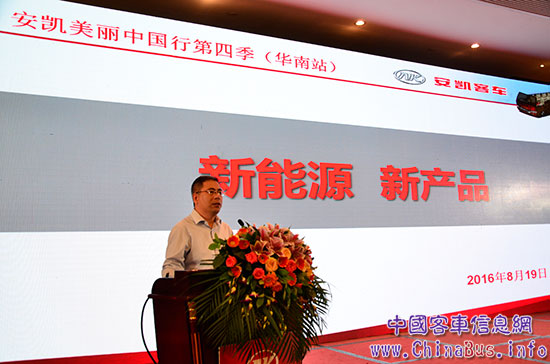 2016年8月19日,與精彩紛呈的里約奧運相呼應,中國客車行業(yè)規(guī)模最大、延續(xù)時間最長、最具行業(yè)知名度的大型品牌互動推廣活動——“安凱美麗中國行”第四季華南站在廣州隆重召開。來自華南地區(qū)的旅游、客運、公交、團體租賃公司、行業(yè)協(xié)會領(lǐng)導、新聞媒體等300余人齊聚一堂,共同探討我國客車行業(yè)尤其是新能源客車的發(fā)展。