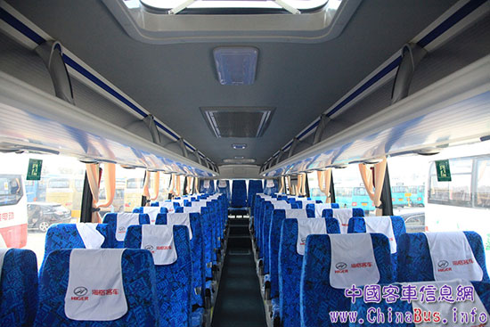 海格技術(shù)工程師為團體運營精打細(xì)算,打造10.99米長車身,以加大乘坐空間,成就高于同類車型的53座新選擇。同時整車線條剛健圓潤,賦予車輛動感與力度,車內(nèi)匹配簡約團體車行李架,讓團體出行從容優(yōu)雅。