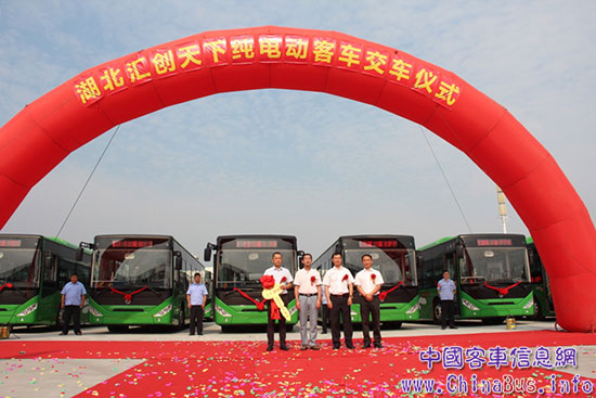 在這收獲的季節(jié),東風(fēng)超龍向湖北匯創(chuàng)天下交付首批30輛EQ6105CBEVT純電動(dòng)公交的交車(chē)儀式于2016年8月29日舉行。