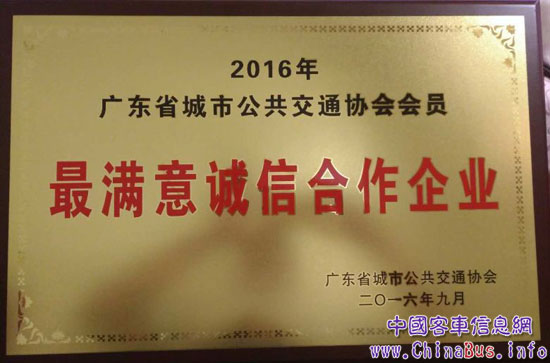 金旅獲“廣東省城市公交最滿意合作企業(yè)”稱號