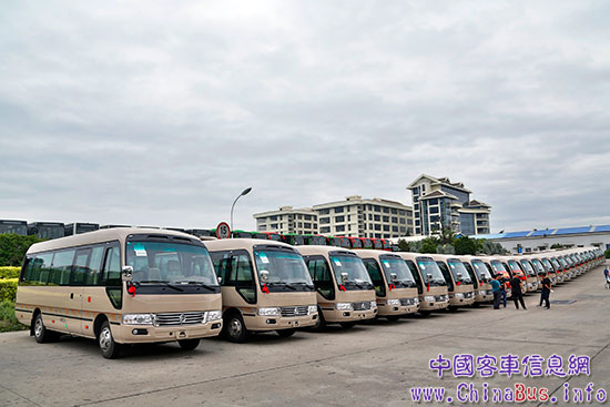 24輛全新金旅XML6700JB8考斯特從廈門啟程盤錦