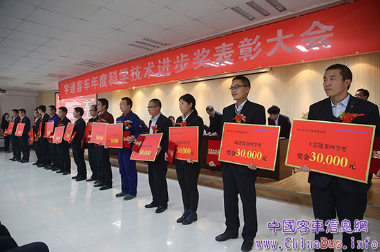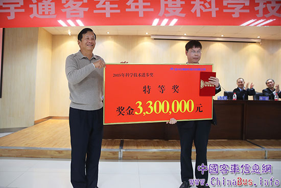 10月25日,宇通客車2015年度科學技術表彰大會在宇通工業(yè)園隆重召開,大會對公司2015年在產(chǎn)品、技術、工藝、質量等各方面代表性的創(chuàng)新項目予以表彰,其中最高獎項單項獎金高達330萬元!