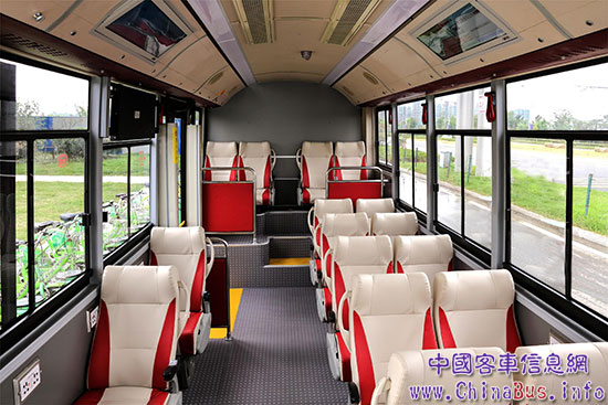 純電動(dòng)觀光巴士在秋冬天氣采用紅色這種暖色系內(nèi)飾,春夏采用藍(lán)色系內(nèi)飾。每年根據(jù)季節(jié)變化調(diào)整車輛內(nèi)飾,新區(qū)公交不覺得麻煩,蘇州金龍也非常配合,能夠?yàn)橛慰涂紤]到如此細(xì)節(jié),在國內(nèi)公交行業(yè)實(shí)屬罕見。