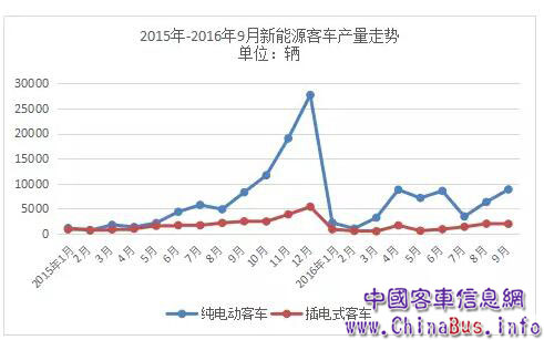 新能源汽車推廣初始主要集中在公共領(lǐng)域,新能源客車一直是政府推廣的主力。2016年從各省市出臺的新能源汽車推廣規(guī)劃來看,電動(dòng)公交的投放計(jì)劃占據(jù)較大比例,可見市場對新能源客車的需求是非常旺盛的。然而2016年已行至尾聲,新能源客車市場表現(xiàn)卻中規(guī)中矩,甚至有點(diǎn)差強(qiáng)人意。這其中有多重因素影響,一方面因騙補(bǔ)核查清理了部分虛高的產(chǎn)銷量,另一方面,政策的一系列波動(dòng)使得市場推廣無法穩(wěn)定進(jìn)行。