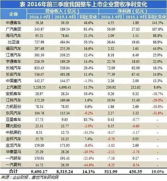 根據(jù)蓋世汽車研究院整理的數(shù)據(jù),統(tǒng)計(jì)的24家上市的整車企業(yè)營(yíng)收、凈利潤(rùn)合計(jì)雙雙實(shí)現(xiàn)增長(zhǎng)。其中,凈利潤(rùn)實(shí)現(xiàn)增長(zhǎng)企業(yè)中,中通客車表現(xiàn)最佳,前三季度凈利潤(rùn)增幅高達(dá)141.5%,位居第一位。