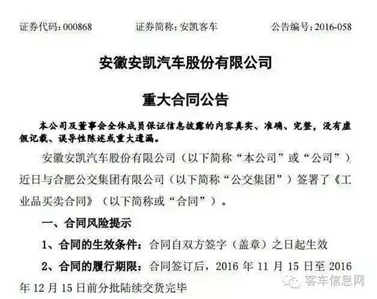 11月3日晚間,安凱客車發(fā)布重大合同公告。