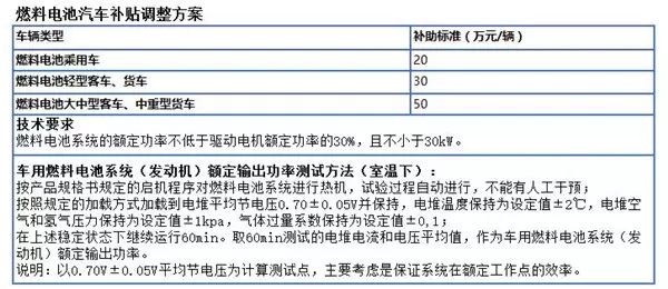 在燃料電池汽車方面,補貼的標(biāo)準(zhǔn)新老政策沒有變化,但新版補貼草案提出了一些列技術(shù)指標(biāo)要求:燃料電池系統(tǒng)的額定功率不低于驅(qū)動電機額定功率的30%,且不小于30kW。