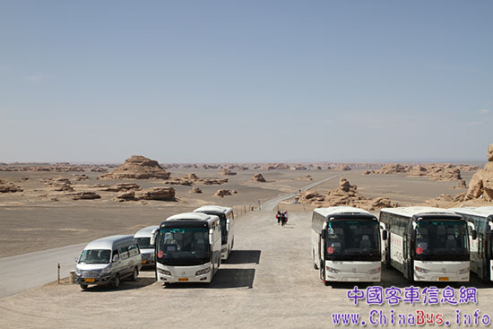 金旅客車在雅丹景區(qū)提供交通服務(wù)