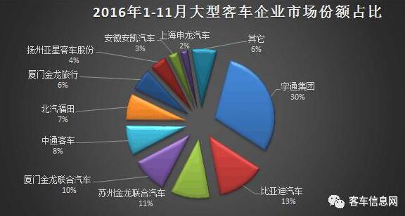 據中汽協(xié)統(tǒng)計的數據顯示,2016年11月,國內大型客車(含非完整車輛)市場銷售7109輛,環(huán)比增長2.21%,同比增長9.39%。其中,銷量排名前十的客車企業(yè)共計銷售9427輛,占據當月整個大型客車銷量份額的94.79%。(市場份額相較于10月的97.51%,環(huán)比下降2.72%。)