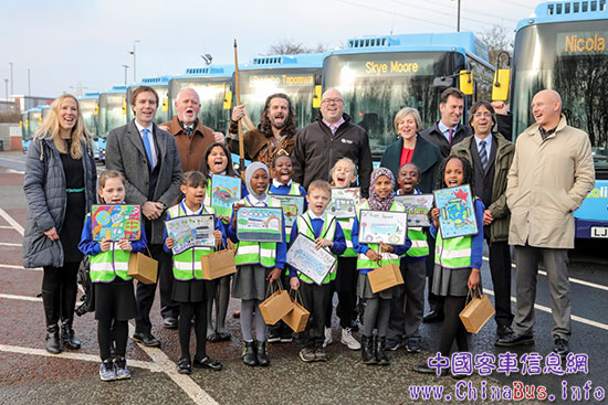 除了政府當(dāng)局和運(yùn)營商,比亞迪純電動(dòng)大巴也受到了當(dāng)?shù)厍嗌倌暌淮臍g迎。諾丁漢當(dāng)?shù)亟M織了一場關(guān)于“諾丁漢電動(dòng)大巴帶來的環(huán)境效益”的繪畫作品征集賽,勝出的十名學(xué)生可以分別用其名字命名一輛大巴。十名來自諾丁漢維爾貝克小學(xué)的學(xué)生們最終取得了優(yōu)異的成績。