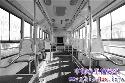 登上車后可以看到,車內(nèi)飾板主體顏色采用乳白色,軟座為灰綠兩色搭配;乘客扶手桿為不銹鋼材質(zhì),且設(shè)置更加科學、人性化,方便抓扶。車子啟動平穩(wěn),運行時聽不到發(fā)動機噪音。