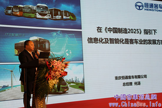 除榮耀摘獲雙星的喜人成績(jī)外,恒通客車總經(jīng)理何濤在12月23日上午舉行的中國(guó)客車與運(yùn)營(yíng)發(fā)展高峰論壇上發(fā)表了《在<中國(guó)制造2025>指引下信息化及智能化是客車業(yè)的發(fā)展方向》的主題演講,闡述了在兩化融合思維下智能化客車的發(fā)展趨勢(shì),并分享了恒通客車在智慧公交方面的探索之路和豐碩成果。