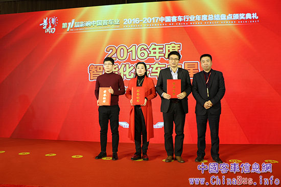 2016年12月23日,由中國(guó)土木工程學(xué)會(huì)城市公共交通分會(huì)與中國(guó)客車網(wǎng)聯(lián)合主辦的“第十一屆影響中國(guó)客車業(yè)系列活動(dòng)暨2016-2017中國(guó)客車行業(yè)年度總結(jié)盤點(diǎn)頒獎(jiǎng)典禮”在北京隆重舉行。恒通客車憑借ITS智能巴士的行業(yè)領(lǐng)先技術(shù)和在微公交領(lǐng)域的影響力,“恒悅系列客車”和 “恒星系列客車”眾望所歸,分別榮耀摘獲本屆影響中國(guó)客車業(yè)評(píng)選活動(dòng)的“2016年度智能化客車之星”和“2016年度微公交客車之星”,將“雙星”收入囊中。