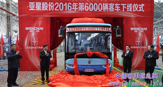 12月27日,亞星客車2016年第6000輛客車下線儀式在揚州舉行,譚旭光董事長出席儀式,并與揚州市委副書記、代市長張愛軍共同為第6000輛客車揭幕。