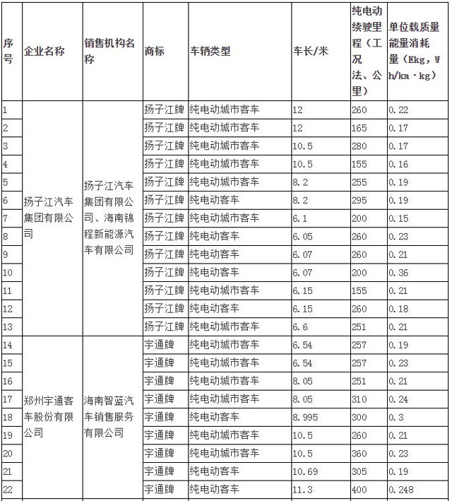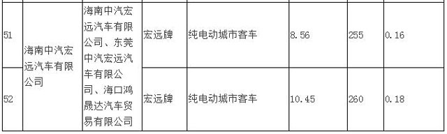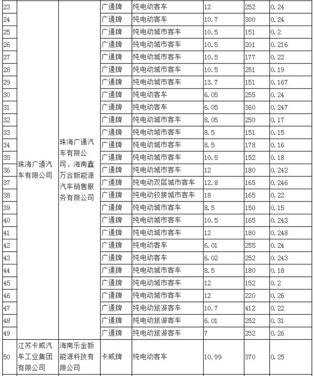 以下是海南省第二批新能源汽車推薦目錄中52款純電動客車情況: