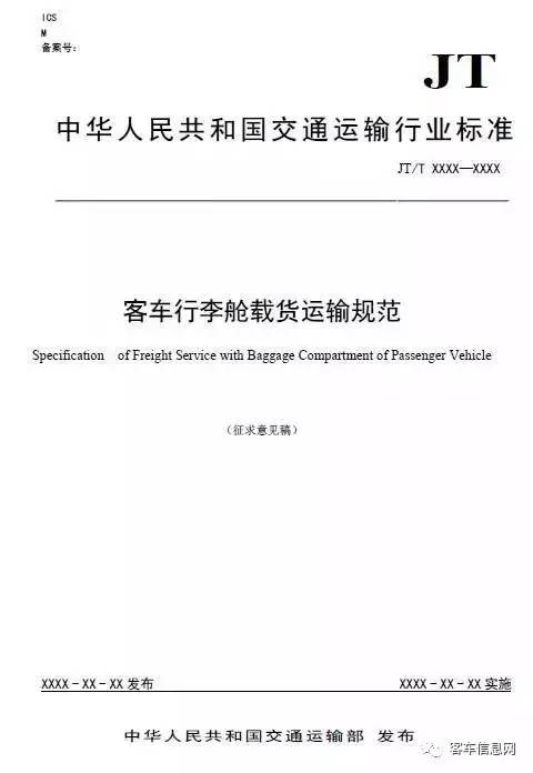 《客車行李艙載貨運輸規(guī)范》公開征求意見