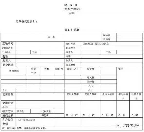 4.4.5.4 運單一式四聯(lián),應(yīng)包括留存聯(lián)、托運人聯(lián)、承運人聯(lián)、到達站聯(lián)。運單格式參見附錄B。