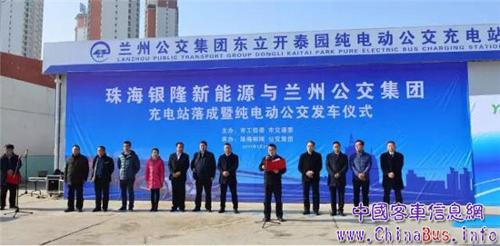 1月21日,蘭州公交集團舉行東立開泰園純電動公交充電站落成暨發(fā)車儀式,“零污染、零排放、低噪音”純電動公交車在蘭州市投運。蘭州市副市長楊建軍、銀隆集團總裁孫國華、副總裁李賢能,蘭州公交集團董事長梁國慶等出席了儀式。
