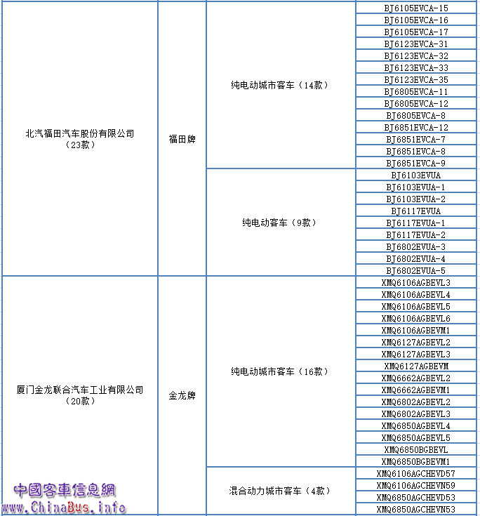 包括鄭州宇通客車35款,北汽福田23款,廈門金龍20款,中通客車11款,安凱客車7款,南車時(shí)代7款,廈門金旅6款,亞星客車6款等。