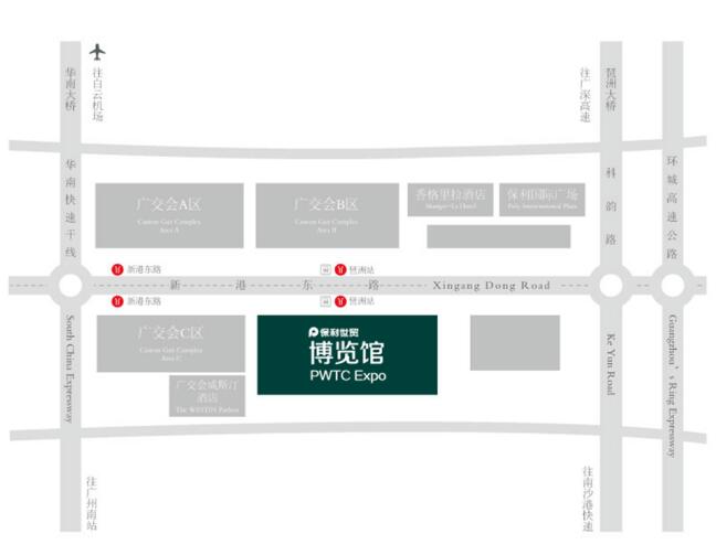 2、 地鐵:約35分鐘,搭乘2號線(廣州南站方向)至昌崗站換乘8號線(萬盛圍方向)至琶洲站C出口。