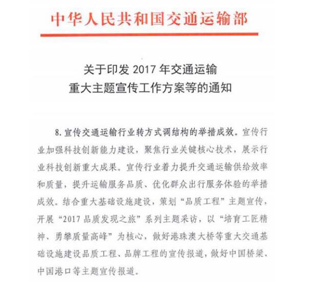 2017年2月20日,在交通運輸部發(fā)布的《關(guān)于印發(fā)2017交通運輸重大主題宣傳工作方案等的通知》紅頭文件中,將“2017品質(zhì)發(fā)現(xiàn)之旅”升級為了交通運輸部級別項目。隨著項目定位的升級,進(jìn)入2017年,“品質(zhì)發(fā)現(xiàn)之旅”將承擔(dān)宣傳交通運輸行業(yè)轉(zhuǎn)方式調(diào)結(jié)構(gòu)舉措成效的重任。