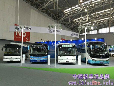 (金龍客車(chē)展臺(tái)前人頭攢動(dòng))
