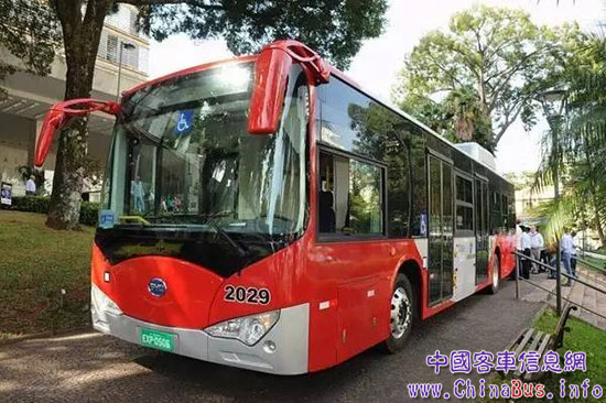 在坎皮納斯投入使用的比亞迪純電動巴士