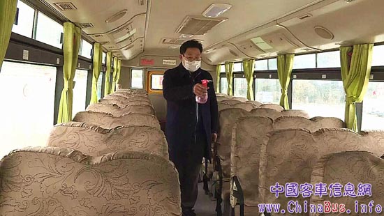 安全導(dǎo)護(hù)老師給校車消毒