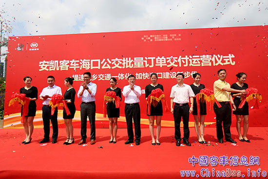 據(jù)悉,在“安凱美麗中國(guó)行”第五季啟動(dòng)儀式上隆重舉行了150臺(tái)安凱純電動(dòng)客車??诠簧暇€運(yùn)營(yíng)儀式,這是海南省有史以來(lái)最大批量的純電動(dòng)公交車投入運(yùn)營(yíng)。