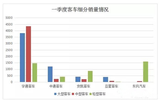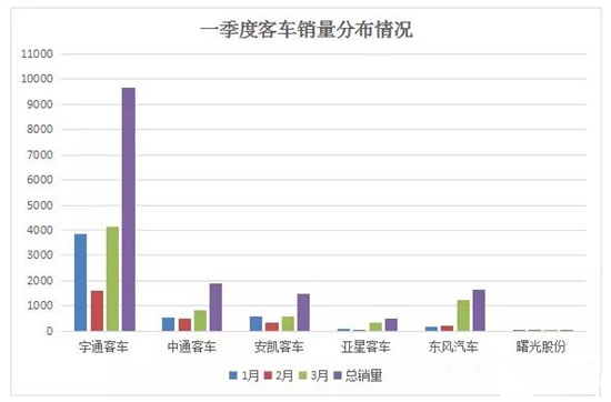 從幾大上市企業(yè)發(fā)布的數(shù)據(jù)看,整個(gè)一季度客車的銷量較去年都有較大幅度的下降,整體表現(xiàn)低迷,不過到了3月份,幾大企業(yè)的銷量都有不同程度的增長(zhǎng),市場(chǎng)開始逐步升溫。