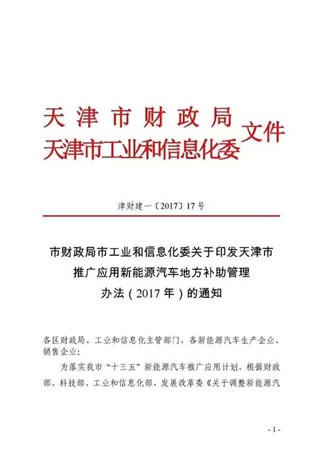 天津市推廣應(yīng)用新能源汽車(chē)地方補(bǔ)助 管理辦法(2017年)