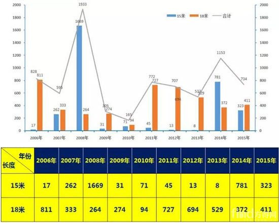 15米與18米車型十年銷售情況