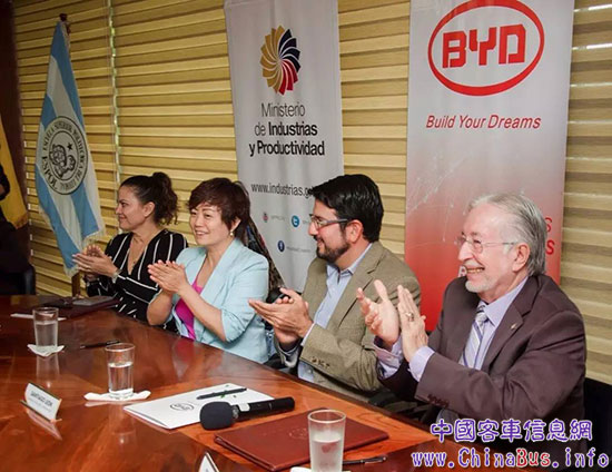 當?shù)貢r間5月8日,比亞迪高級副總裁李柯女士與厄瓜多爾工業(yè)生產(chǎn)部部長SantiagoLeón先生正式簽署MOU,宣布將在當?shù)赝顿Y建設(shè)純電動大巴工廠,以進一步加強雙方在新能源領(lǐng)域的合作。
