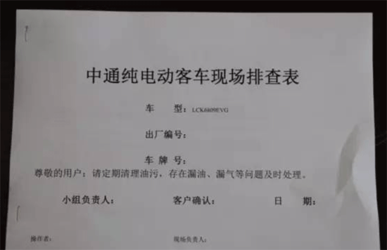 中通純電動(dòng)客車現(xiàn)場(chǎng)排查表