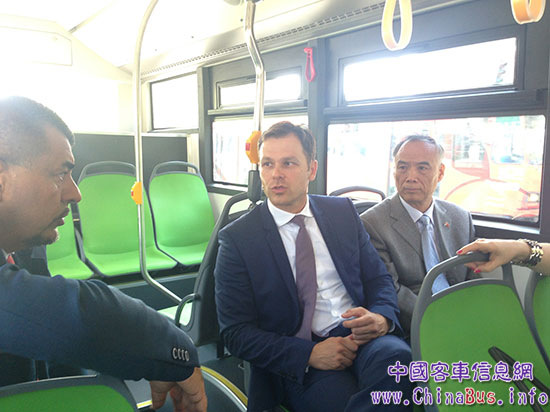 中國駐塞爾維亞大使李滿長與貝爾格萊德市市長乘坐海格客車