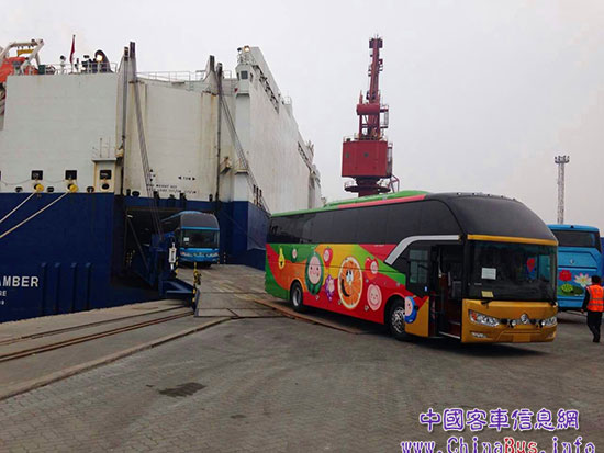 新一批絢麗的金旅凱歌裝船發(fā)往緬甸