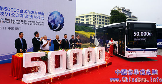 金旅第50000輛客車出口海外發(fā)車慶典暨以色列137輛歐VI公交車交接車儀式